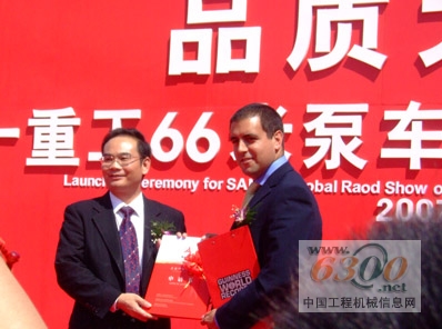 省委常委、副省长徐宪平代表省委、省政府表示祝贺。市领导张湘涛、刘晓明、文树勋等出席启航仪式。为向业内专家和广大客户展示66米泵车的技术优势和卓越性能,三一重工还在长沙市经济技术开发区正在兴建的一个房地产工地进行了现场演示。陕西天石混凝土有限公司与三一重工当场签订了首台66米泵车的销售意向书。