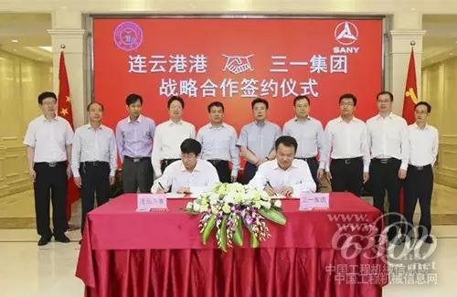 6月5日,三一集团与连云港港口集团有限公司在北京产业园正式签订战略合作框架协议。三一集团董事长梁稳根、三一集团总裁唐修国、连云港港口集团董事长、党委书记白力群等出席了签约仪式并进行了友好会谈。