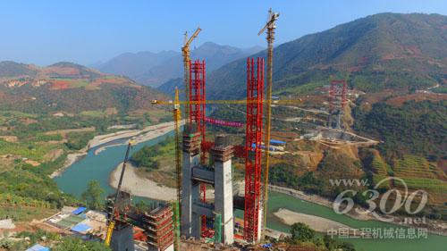 大瑞铁路怒江特大桥全面开工,图为立体化施工场面。王会堂摄