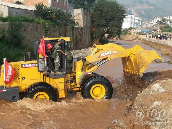徐工救援队员早已为车辆做好了一切前期准备,按照指挥部安排,此台徐工LW500FN装载机参与清理灾区因塌方被堵塞的河道,并在河道中进行铺设快速通道工作,从河道中央开出一条水上救援之路。至上午11点,徐工装载机高效出色地顺利完成了任务,不仅排除了水灾隐患,更在河道中修出一条“生命线”,使后续救护车、武警车等救援车辆可以通过这条简易通道直抵震中,为被困被埋群众在72小时黄金救援时间内获救争取到了更多时间。