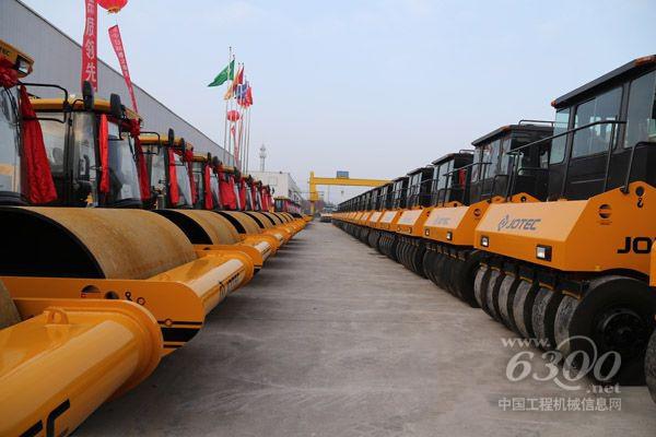 100台全液压压路机缓缓驶出厂区