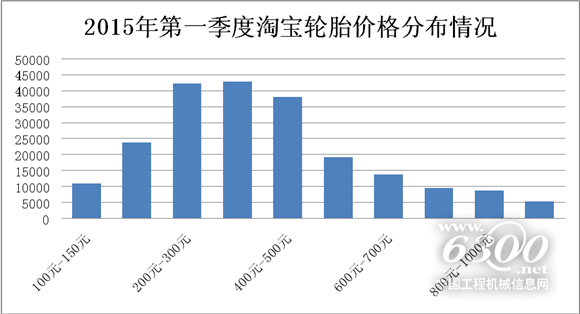 2015年第一季度,线上轮胎的销售价格基本维持不变,从150元到1500元不等,而200-500元的轮胎价格区间依旧最受消费者欢迎,相较于上月变化不大。本月轮胎200-300、300-400元的成交量均突破40000件大关。由此看出,平民化的价格仍然最受消费者的欢迎。