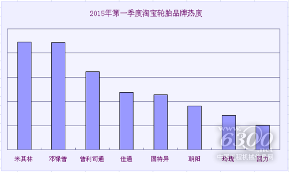 2015年第一季度,全球著名国际轮胎品牌领导者“米其林”跻身轮胎畅销榜销售冠军宝座,另一国际著名轮胎品牌“邓禄普” 和 “普利司通”保持佳绩,紧随其后,位居二、三。