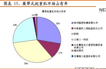 履带起重机的销售形势是所有工程起重机中最好的,由于履带式起重机70%以上应用于大型冶金、石化、电力(火电、核电、水电、风电)工程建设中吊装作业。在我国重型工业发展进程中,得到广泛的应用和超高速的发展,能源的紧缺拉动了电力工业的建设,带动了超重型的履带式起重机的需求,预计08年履带式起重机将达到90%以上的同比增长速度。徐工科技、中联重科和三一重工都将是履带式起重机繁荣的受益者。当然履带式起重机市场容量相对较小,对各公司的整体收益增幅相对较小,但履带起重机能够有效平滑工程机械公司的周期性波动。