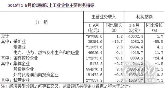 1-9月份,全国规模以上工业企业实现利润总额43032.4亿元,同比下降1.7%,降幅比1-8月份收窄0.2个百分点。