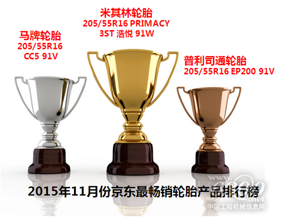 2015年11月份,京东电商平台轮胎销量排行榜冠军是米其林轮胎 205/55R16 PRIMACY 3ST 浩悦 91W,排名第二位的则是马牌轮胎 205/55R16 CC5 91V,普利司通轮胎 205/55R16 EP200 91V本月崛起,排名第三。作为在轮胎市场纵横多年的国际大品牌,马牌、米其林、固特异、倍耐力等国际大牌始终以其优良的品质赢得消费者的信赖。国产品牌如朝阳等,必须不断加强在研发创新方面的投入,提高产品质量,加大品牌推广力度,才能在电商领域与国际品牌一较高下。