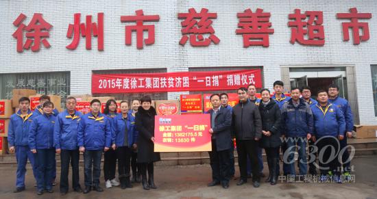 1月12日,徐工集团凭借对公益事业的突出贡献,荣获第四届中国公益节最高奖项“公益集体奖”。12月1日,在香港举办的“2015绿色中国国际论坛”上,徐工集团荣获2015“绿色中国企业社会责任成就奖”。天津“8.12”重大爆炸事故、智利“9.17”8.3级大地震、深圳“12.20”滑坡事故发生后,徐工都第一时间组织设备赶赴现场参与救援。12月,徐工员工“一日捐”138万余元,连续14年捐款捐物徐州第一。