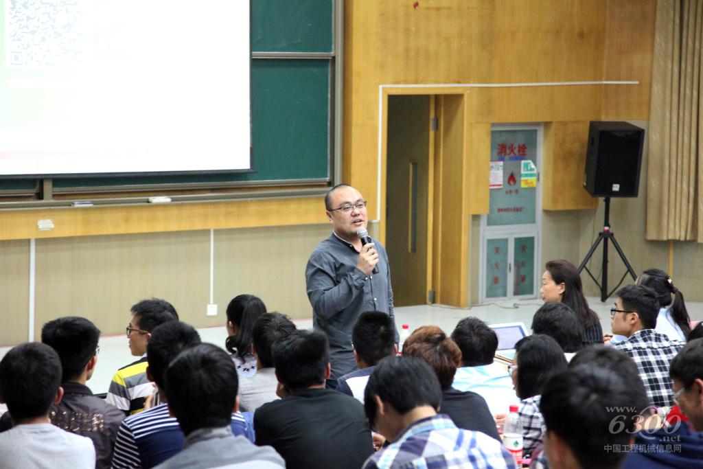 西安站宣讲会是以张鹏飞书记热情洋溢的致辞开始的,现场来了许多西北工业大学的师生,甚至还有乘坐近2个小时车程赶来的低年级学生。刘书记用精炼的语言、极富感染力的声音以及满满的情怀向同学们传递着“徐工,让世界更美好!”的理念,也得到了现场许多同学的回应。互动环节,现场同学们的问题一个接着一个,围绕着特别感兴趣的课题方向、产业化实现可能性以及环保产业未来发展趋势等提出了专业问题,与现场嘉宾交换想法。会后,带队老师还与嘉宾一同交换了意见,就如何辅导学生把比赛作品做出水平进行了热烈的讨论。