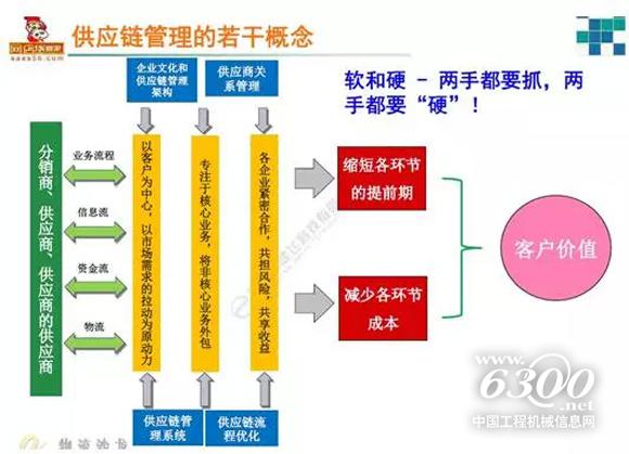 第五,电子化。电子商务带来了供应链管理的变革,它运用供应链管理思想,整合企业的上下游的产业,以中心制造厂商为核心,将产业上游供应商、产业下游经销商(客户)、物流运输商及服务商、零售商以及往来银行进行垂直一体化的整合,构成一个电子商务供应链网络,消除了整个供应链网络上不必要的运作和消耗,促进了供应链向动态的、虚拟的、全球网络化的方向发展。(本文来自三一重工)