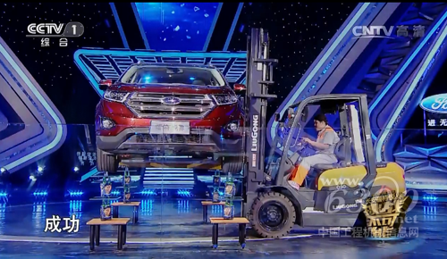 “叉车祖师娘”成功挑战啤酒瓶上放汽车