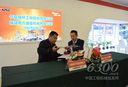 南方路机总经理方凯(右)与宁夏路桥工程公司现场签约
