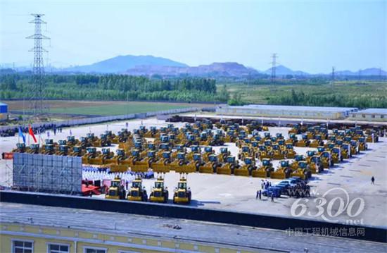 首批到货的10台LW500KN-LNG液化天然气装载机身披红绸,英姿飒爽,在厂区内一字排开,等待检阅。