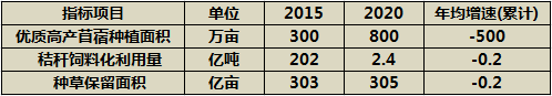 按照农业部发布的《全国草食畜牧业发展规划(2016-2020年)》,未来五年的主要任务是采取“龙头企业+合作社+养殖大户或家庭农(牧)场”的经营模式和种养结合、农民循环的养殖模式。同时,通过文件中“十三五”草食畜牧业发展主要指标(见下图)可以看出,牧草的种植、秸秆饲料化面积将得到有效保证。结合市场需求现状,预计打捆机终端需求将呈现出以下发展趋势:
