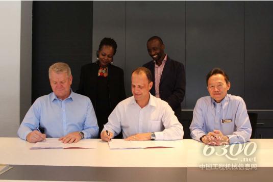 签署备忘录的小松非洲公司社长Mike Blom(左)与康明斯非洲公司副社长Gino Butera(中)