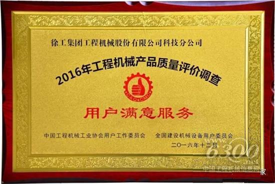 徐工铲运机械事业部荣获2016年全国用户满意服务单位