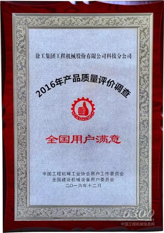 2016年中国工程机械工业协会用户委员会年会暨四届一次会员代表大会落下帷幕。会上,发布了2016年全国土方、起重机械和叉车产品质量用户满意度评价调查结果,徐工铲运机械事业部荣获“用户满意单位”及“全国用户满意产品”两项殊荣。