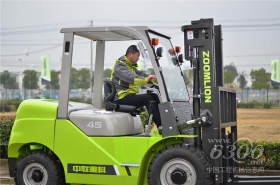 2016年,中联重科叉车的海外市场出口量进一步提升。公司特开发了适应海外市场需求新款4.5吨内燃平衡重式叉车。其外观造型简洁、大方,给人以稳重之感,平衡重后部镂空设计为饱满的造型增添了动感。整车液压系统采用带负载传感的多路阀及转向器,可大幅度提升工作效率;人机工程方面,采用悬挂式脚制动,增大驾驶员操作空间,且整车采用全悬浮式护顶架设计,有效降低整机震动,驾驶员操作更舒适。