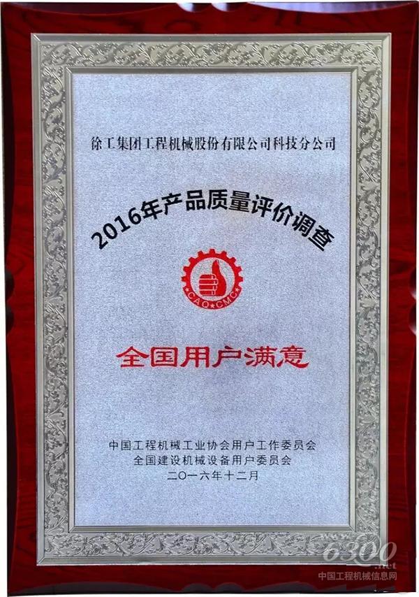 2016年,在中国工程机械工业协会用户委员会开展的产品质量和售后服务质量状况用户满意评价调查活动中,徐工装载机以质量用户满意度及售后服务用户满意度的高评价,再获“用户满意单位”及“全国用户满意产品”称号。自2013年,事业部连续4年在中质协等相关权威协会组织获得此类殊荣,彰显了用户对徐工装载机高品质和超值服务的高度认可。