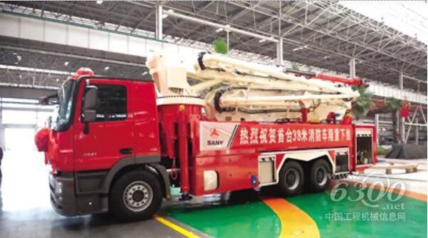 近日,全新的三一38米消防车在三一重工18号厂房下线