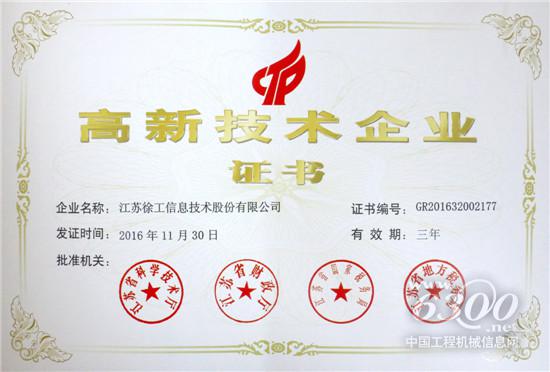 近日,江苏徐工信息技术股份有限公司(以下简称“徐工信息”)凭借过硬的技术实力顺利通过江苏省科学技术厅、江苏省财政厅、江苏省国家税务局、江苏省地方税务局四部门的联合评审验收,获得“国家级高新技术企业”称号。
