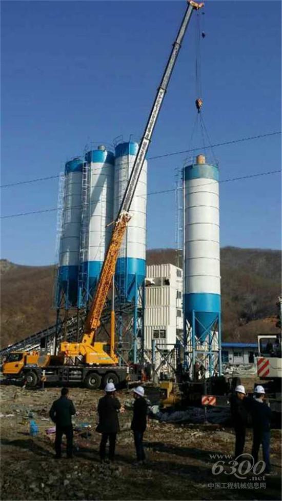 在和龙一处公路建设项目部,XCT35即将完成拌合站的安装任务,由于罐体高、距离远,在以往的类似工况中,大多使用50吨起重机进行吊装。但不到半天时间,XCT35就快速完成四个罐体的安装任务。