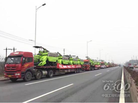 运输车辆排成长龙,等待中联重科农机产品发往市场