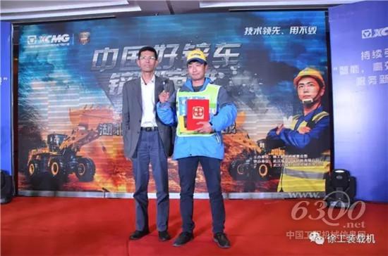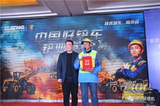 中国好铲车“铲业英雄”争霸赛武汉站颁奖典礼隆重举行,来自武汉钢铁集团的陈盼盼荣获本站比赛第一名,梁总为其颁奖