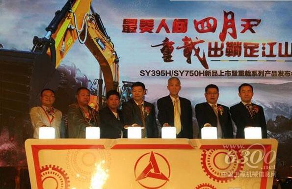 SY395H/750H挖掘机上市 三一重机完成重载系列全工况布局。图为上市活动现场与会嘉宾合影