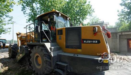由于聪明的设计和过硬的制造工艺,徐工XLZ2103出色的完成了任务,它铣刨深度达到25公分,现场行走速度7米每分钟,即便遇到石块和建筑垃圾,甚至是钢筋金属物品等,依然动力强进,行走速度均匀且冷再生后物料颗粒细小,完全达到了设计的要求。