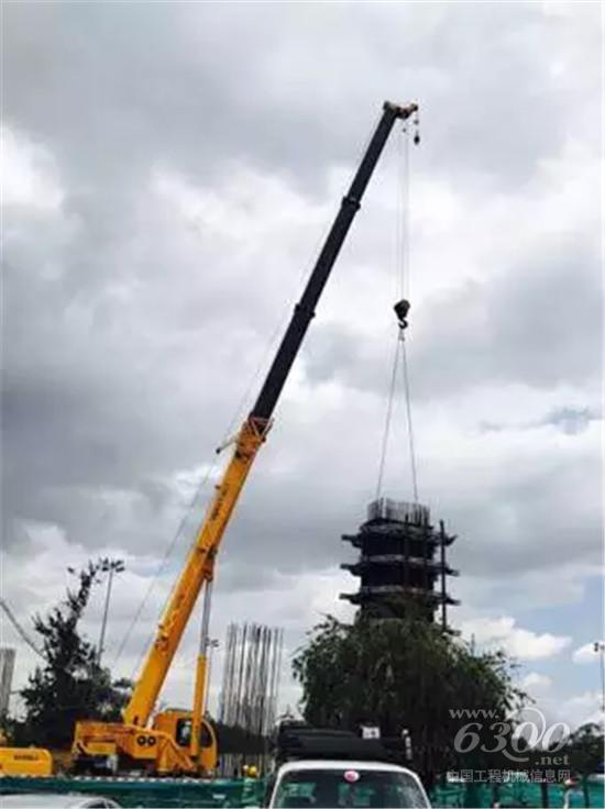 徐工QY50K汽车起重机在内马铁路建设工地上进行吊装作业。内马铁路分为三期工程进行,一期2A段已开工,目前正在进行前期营地建设。作为前期施工的主力,徐工QY50K已经连续数周作业,其可靠性能在施工中得到了检验。