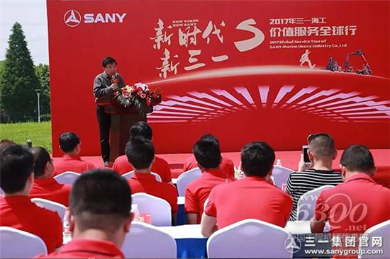 2017年5月25日,“新时代 新三一”——三一海工2017年价值服务全球行启动仪式在长沙产业园举行。三一海工携手全球服务团队及配套厂家,庄严宣誓:即将穷尽一切手段,全力解决客户问题,将客户满意度提升到新的高度。届时国内九大战区,全球各区域将出动300多名服务将士,近百台服务车,历时120天,主动点检及免费保养设备共2800台,全面拉开了2017年服务品牌建设的序幕。