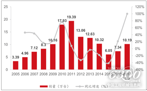 受益供给侧结构性改革,采矿业盈利改善拉动大型挖掘机需求。统计数据显示,2017 年 1 月~6 月,国内共退出煤炭产能 1.11亿吨,已完成全年 1.5亿吨目标的 74%。供给侧结构性改革推动能源资源勘探开发行业盈利能力大幅向好,2017年前三季度,国内煤炭采选业实现利润 2,262亿元,同比增长7.2倍。