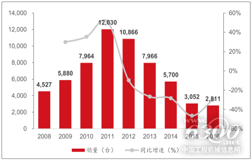 国内工程机械行业自2016年四季度回暖以来,行业“晴雨表” 挖掘机月销量屡超预期。工程机械行业上一轮高增长可以追溯至2008年政府四万亿的投资刺激,以挖掘机为例,国内挖掘机年销量一度攀升至逾19万台。2012年,行业需求急速下滑,并随之进入连续5年的深度调整期,至2015年挖掘机全年销量跌至6.05万台,仅为高峰期约 30%。2016 年四季度以来,行业筑底回暖趋势确定,挖掘机月销量屡超预期。分析需求高增长原因,主要包括以下几点。首先,行业历经 5 年深度调整期,期间被抑制的需求在基建投资增速多年保持两位数增长、采矿业景气度回升等多因素影响下正得到逐步释放。其次,从更新需求的角度考虑,截止至 2016 年年末,国内挖掘机保有量已达到 150 万台左右,加之 2016 年 4 月正式实施的《关于实施国家第三阶段非道路移动机械用柴油机排气污染物排放标准的公告》,排放要求不达标的产品将面临强制淘汰,从而刺激了更替需求。同时,供给侧改革影响下采矿业景气度有效提升,大挖需求量获得提振。