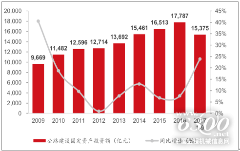 2017年1月~9月,基础设施投资(不含电力、热力、燃气及水生产和供应业)99,652亿元,较上年同期增长19.8%。其中,公路建设累计实现固定资产投资 15,375亿元,同比增长 23.9%;全国铁路固定资产投资额达到 5,455亿元,同比增长 0.6%;民航建设累计实现固定资产投资 570万元,同比增长 16.3%。根据《交通基础设施重大工程建设三年行动计划(2016-2018)》,三年间我国重点推进的交通基础设施项目数量达到303个,总投资规模约 4.7万亿元,其中,铁路、城轨占比居前。