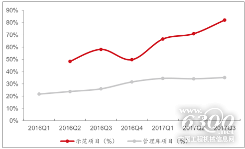 西部地区对于PPP模式需求巨大,相应地区年初以来挖掘机销量增速居前。地域分布方面,西部地区占 PPP 项目总量居前,折射出当地对于 PPP 模式强烈的需求。管理库项目中,西部、东部、中部、东北四大地区项目数量分别为 2,687 个、1,949个、1,868 个以及 270 个,占比 39.7%、28.8%、27.6%以及 4.0%;投资额分别为 4.2万亿、3.0 万亿、2.4 万亿以及 0.6 万亿,占比 41.4%、29.5%、23.7%以及 5.5%。年初至今,挖掘机销量地区分布中,西部地区销量大幅领先于东部、中部地区。2017 年前三季度西部、东部、中部挖掘机累计销量分别达到 36,911 台、29,443 台以及 28,937台,随着更多 PPP 项目进入落地阶段,后续对于挖掘机的持续需求值得期待。