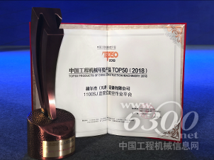 图为捷尔杰荣获中国工程机械年度产品TOP50称号的证书与奖杯