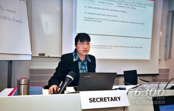 中联重科总工程师、ISO/TC96秘书付玲博士在会上作秘书处工作报告