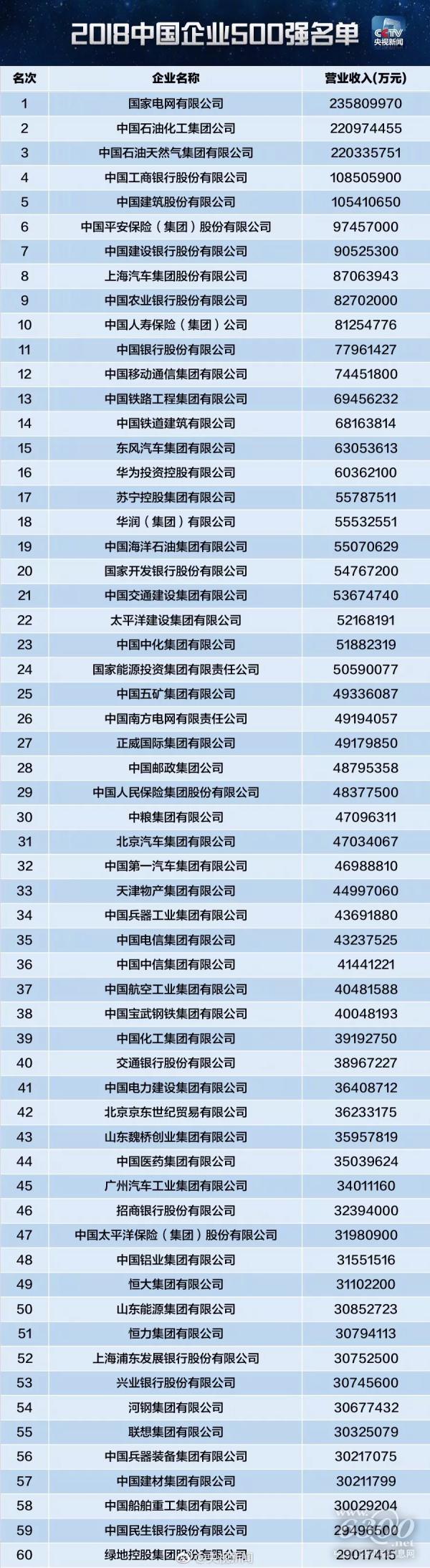 中国企业联合会发布的《中国500强企业发展报告(2018)》显示,制造业大企业表现总体好于服务业大企业。2018中国企业500强中有253家制造企业入围,比上年增加8家;制造企业营业收入、净利润、资产、净资产、纳税额、员工数等6个指标在全部500强中的占比均有不同程度提高。