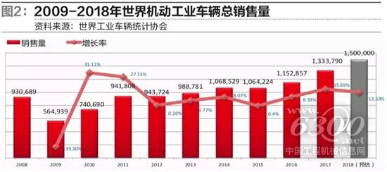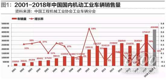 中国已成为工业车辆全球第一的产销大国。2017 年,中国叉车销量约 49 万台,同比增长 34.23%。其中,国内市场销量 37 万台,同比增长约 38%;出口 12 万台,同比增长约 23%。2018年1-8月,中国叉车销售量已突破40万台,达409283台,同比增长26.7%,其中出口110682台,比去年同期增幅达37.5%。预计,2018年中国叉车销量约为58万台,其中,国内销量约为43万台,无论是总销售量、还是国内市场和出口数量均超出预期。