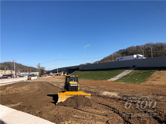 在美国田纳西州诺克斯维尔市的40号州级公路旁,一台山推DH13K2全液压推土机正在平稳作业。这是山推DH13K2推土机第二次在美国市场亮相。