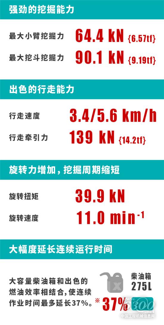 此外,在一系列作业半径等数据上,均表现出强劲的实力。