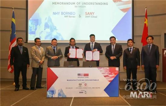 6月14日,三一重工总裁向文波出席“中国—马来西亚制造业圆桌会议”,在中国工信部部长苗圩与马来西亚国际贸易和工业部部长达尔·雷京的见证下,三一与马来西亚博雷欧公司、马来西亚凯特艾公司签署合作谅解备忘录,将在智慧港口建设和升级改造、基础设施建设、城市综合体与住宅工业化等领域开展合作。