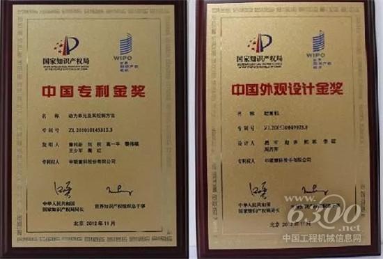 ▲中联重科获得的中国专利金奖和中国外观设计金奖“双冠”奖项