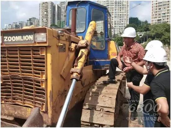 ​老杨向中联重科服务万里行人员介绍推土机运行情况
