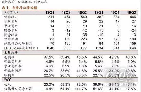 净利润增速高于收入主要有两方面:一是净利率提升至30.7%;二是非经常性损益方面,虽然投资收益大幅下降,同比减少1400万,但政府补助同比增加2000万,对净利润提升有所贡献。