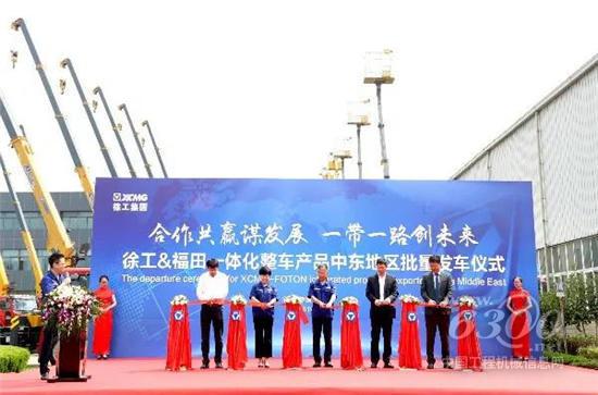 9月20日,徐工、福田一体化整车产品中东地区批量发车仪式在徐工随车厂区隆重举行。50台折臂式随车起重机整装待发,即将“出海”中东,助力该区域石油运输和基础设施建设。