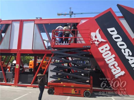 星邦重工14米剪叉参与bobcat展台搭建及清洁工作