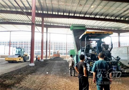 山推的自动伸缩摊铺机,也在院内各个道路上,沥青摊铺作业上大显身手。