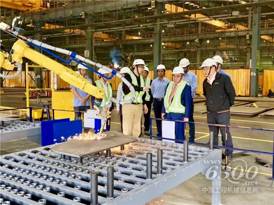 在实地视察工厂生产情况时,他仔细检查了挖掘机结构件的制造过程。看到行走架焊缝、斗杆焊接及铲斗焊接质量较之去年有了很大的提升,他对此十分高兴。同时,认真听取了今年新增加的切割坡口、挖掘机斗杆焊接、行走架焊接三台机器人质量、产能改善情况的介绍,并参与了行走架焊接机器人启用仪式和印度柳工第一届焊接技能比赛的颁奖仪式。