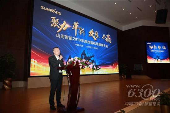 会上,山河智能挖掘机事业部副总经理周杰奇作挖掘机业务工作汇报,他就2019年挖掘机行业市场动态、山河挖掘机市场运行状况以及2020年工作部署与目标分别进行了阐释。